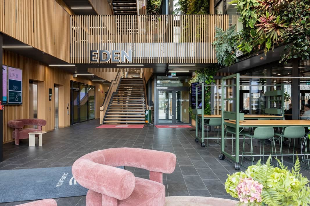 Eden är mer än en arbetsplats, det är framtidens kontor där allt samverkar – jobb och fritid, koncentrerat arbete och avslappnat umgänge. Den grönskande miljön, med ständig kontakt med växtlighet på alla plan, samverkar för att skapa fokus på hälsa, trivsel och välmående.