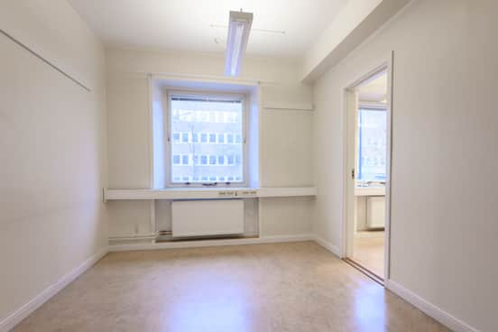 Kontorsfastighet i fyra våningar med hiss. Halv trappa från trottoar till hissentré. Porttelefon finns. Fastigheten är belägen längs en mycket bred innerstadsgata (Kyrkgatan) med fritt läge och välkomnande entré.