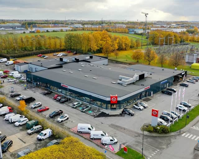 Fastigheten inhyser flera affärslokaler och bra parkeringsmöjligheter utanför för både personal och besökande.
