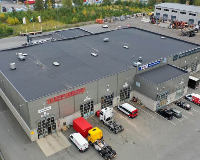På Ljungarums Industriområde ligger denna nyproducerade hypermoderna verkstadslokal för lastbil och buss.