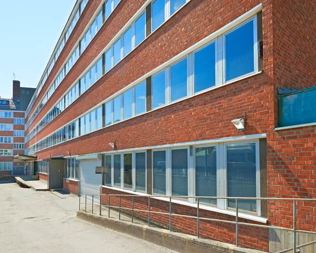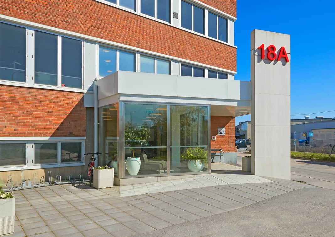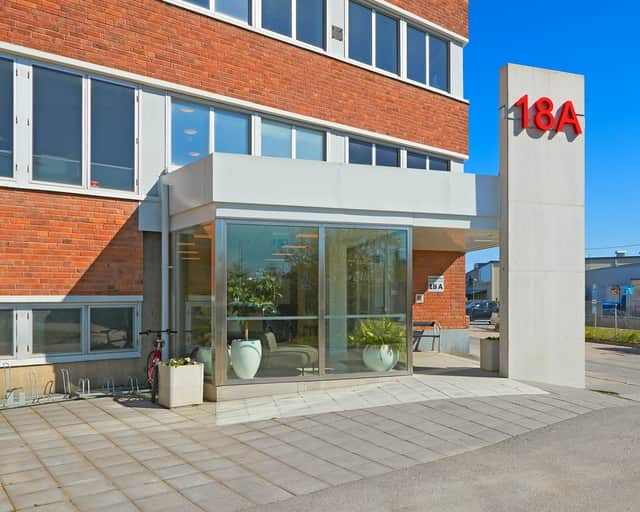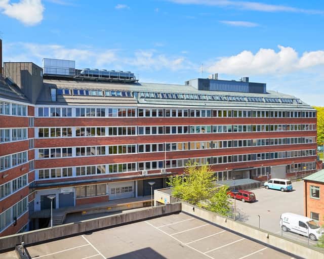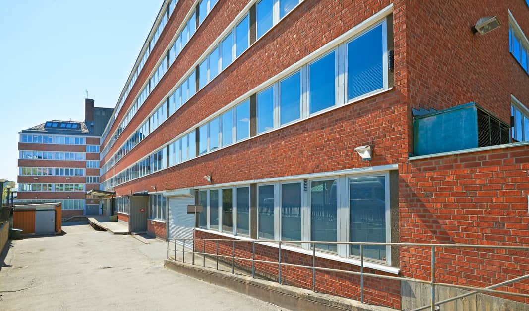 Fastigheten består av en kontor- och lättproduktionsbyggnad med lagerytor och lastkaj i bottenplan. Från kontoren på planen ovan kan du blicka ut över området som är i stor utveckling i och med att Stockholm växer.