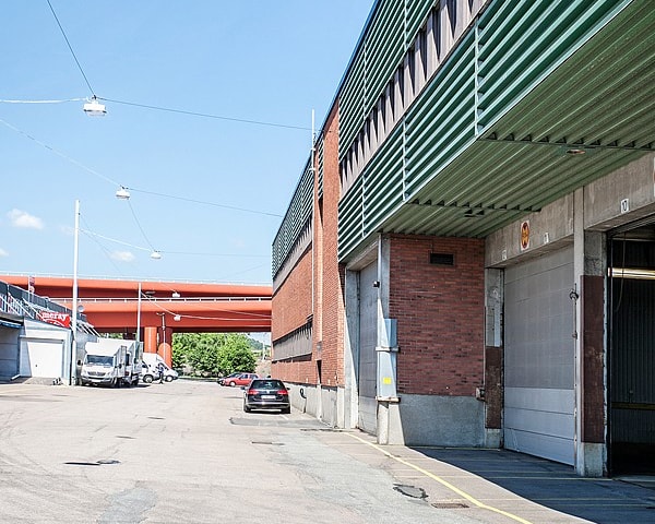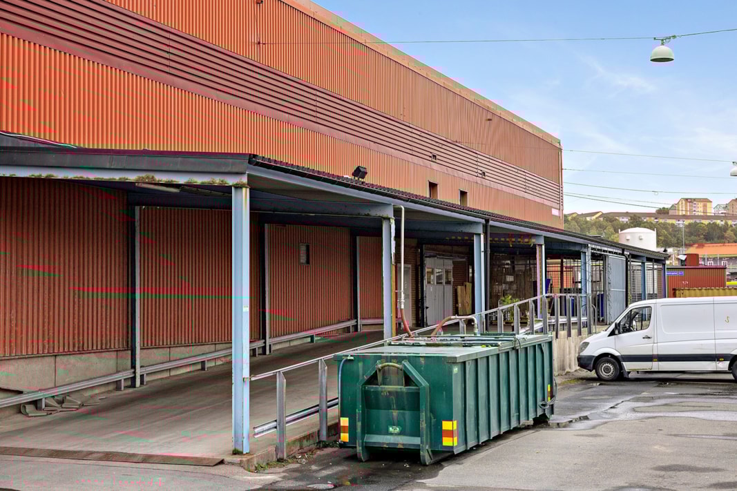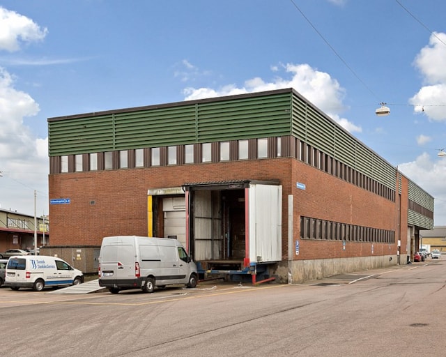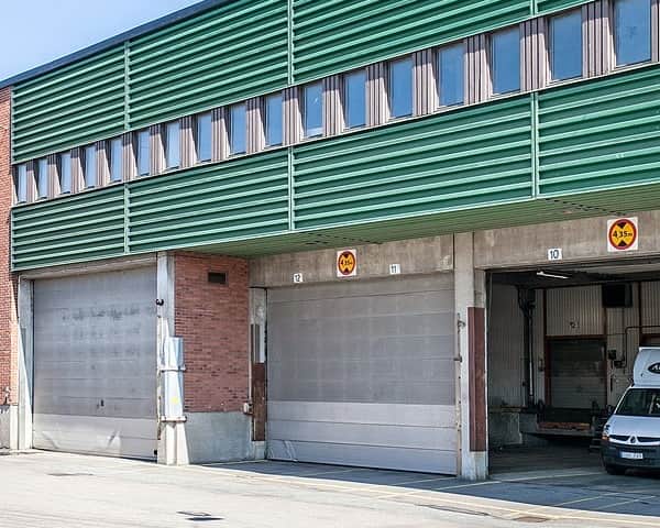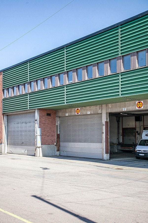 Stor lagerfastighet med 8 portar och en lastbrygga. Varierande takhöjd mellan 3 - 7 m. 1 tr upp finns kontor och lunchutrymme.