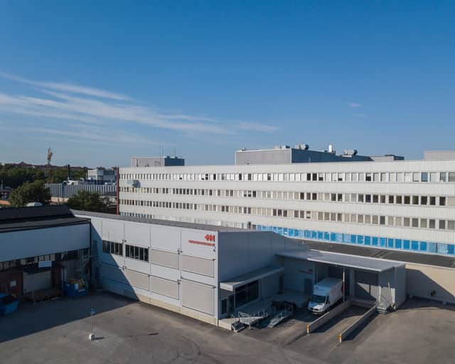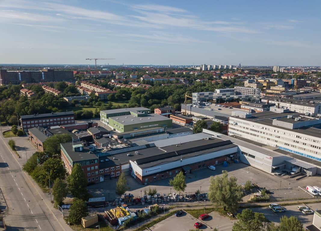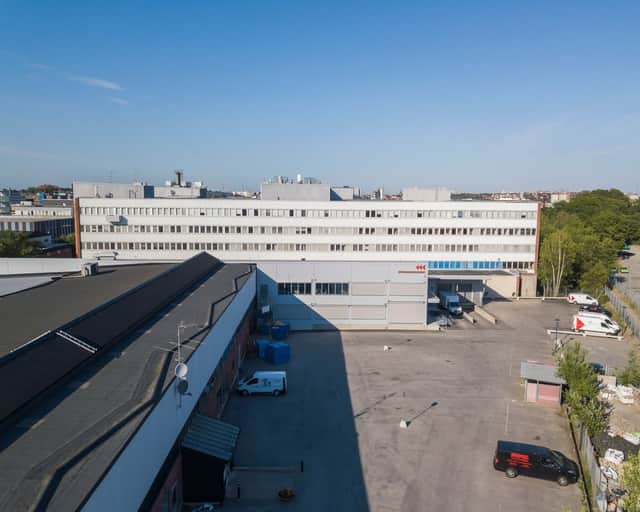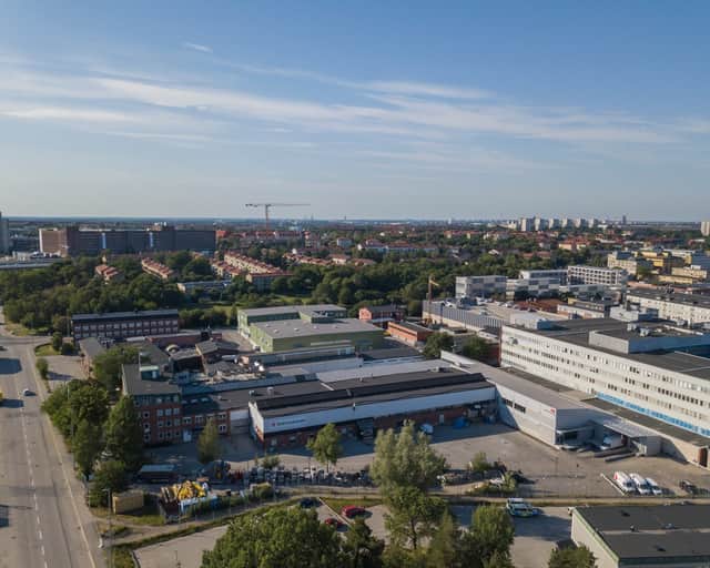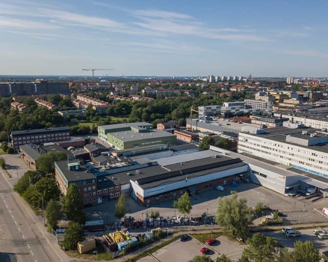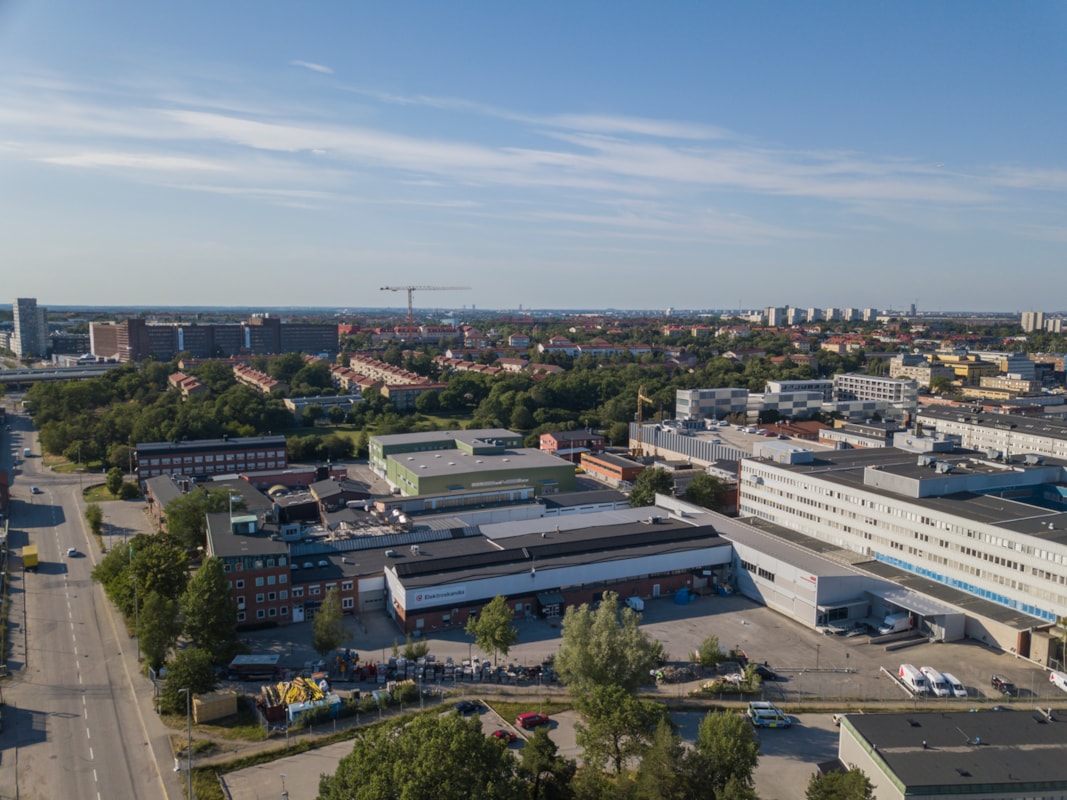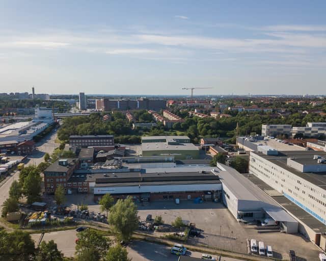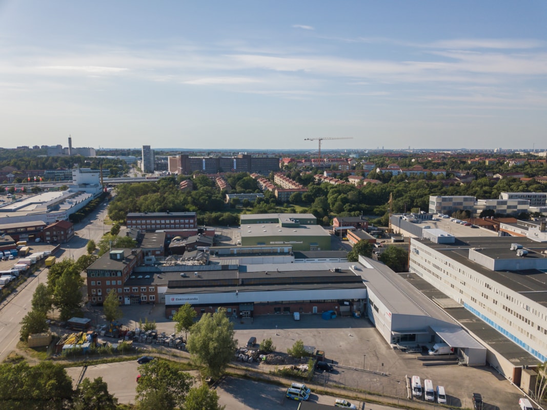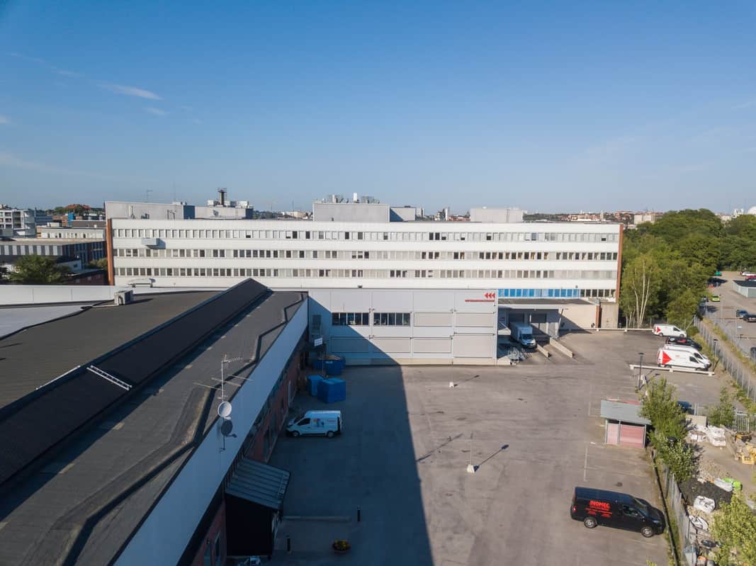 Fastigheten består av en stor och välplanerad tegelbyggnad som innehåller kontor, industrilokaler samt lager. Det finns även en tillbyggnad bestående av lageryta.