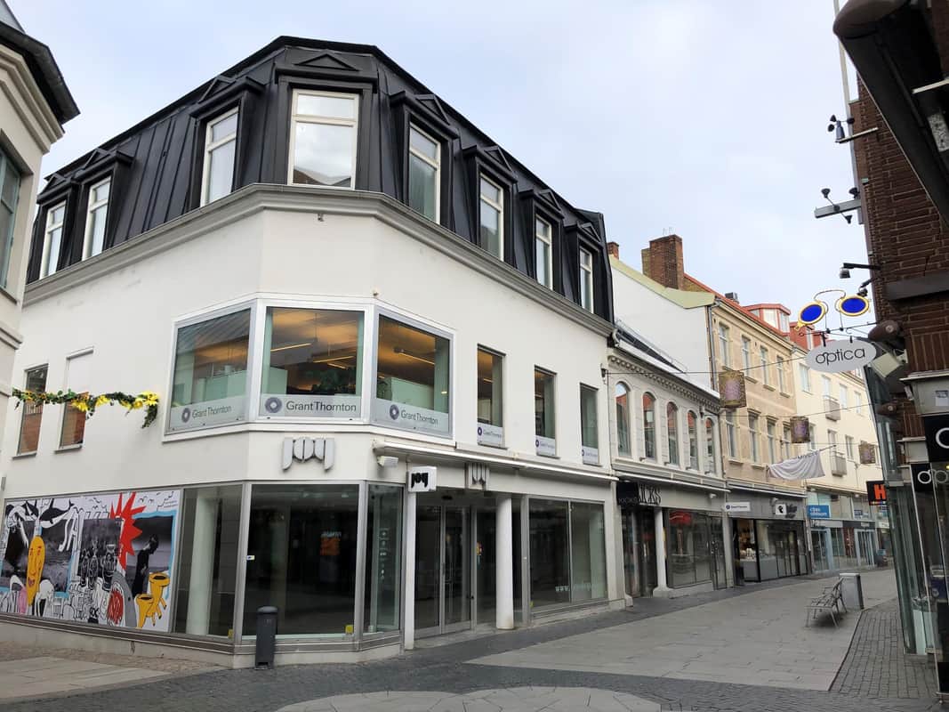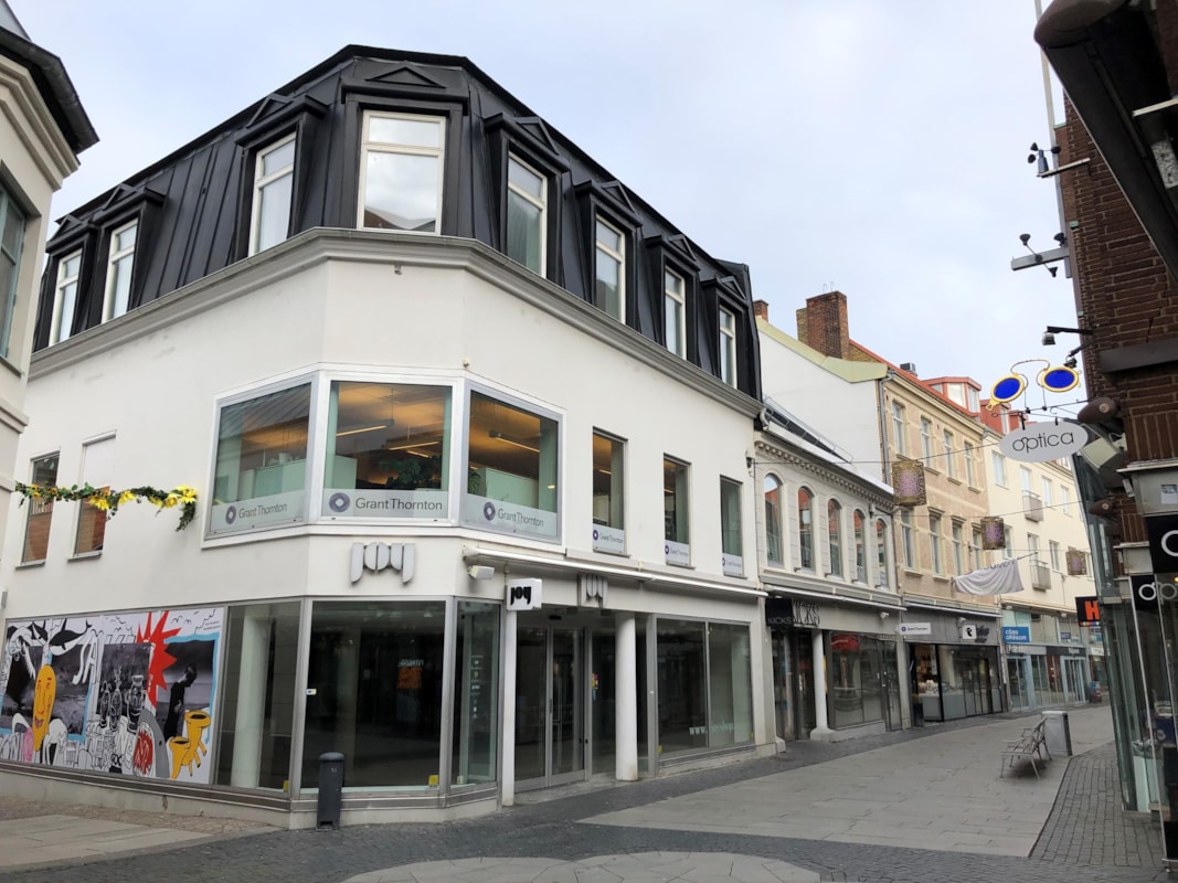 Fastighet mitt i city som består av kontorslokaler och butikslokaler.