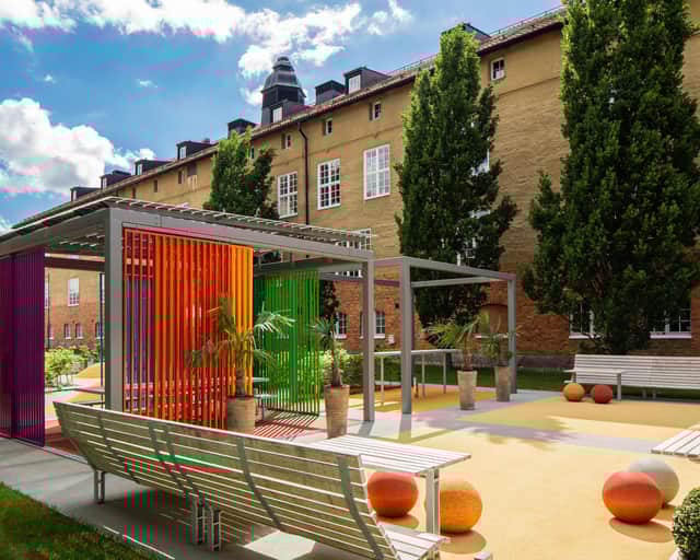 Som hyresgäst hos Castellum har du också fri tillgång till WorkOUT - Sveriges första utomhuskontor samt våra fordonspooler, i form av elbilar och elcyklar som kan nyttjas såväl i tjänsten som privat. Dessutom erbjuds fri tillgång till dusch, omklädning och bastu på Idrottskliniken. Det finns även två låsta cykelgarage på området där man säkert kan låsa in sin cykel under dagen.