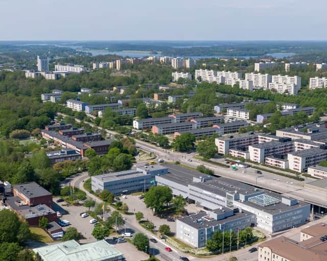 På några minuter promenerar du till tunnelbanestationen Skärholmen. Du kan gå genom SKHLM-gallerian och ha tak över huvudet nästan hela vägen till tunnelbanan. Till centralen tar det inte mer än 20 minuter med tunnelbanans röda linje. Utanför fastigheten går även bussar mot Huddinge. Med bil tar man sig lätt till och från fastigheten via E4/E20. Parkering finns att hyra utanför eller i våra garage som tillhör fastigheten.