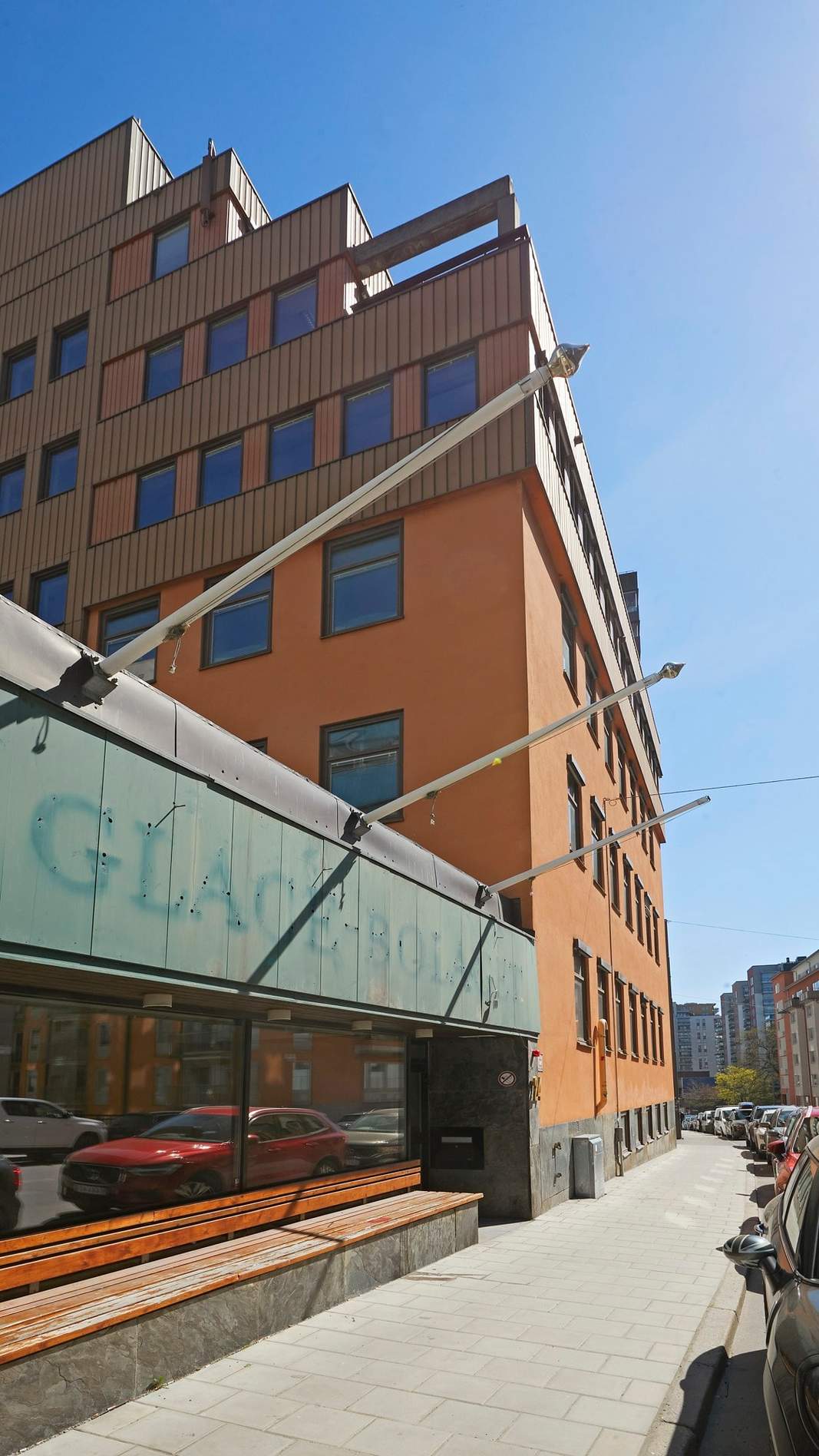 Denna industri- och kontorsfastighet har inrymt allt från verktygsslipmaskinfabrik, glassbolaget GB:s huvudkontor och nu senast gymasieskola. En varsam renovering kommer nu att påbörjas för att ge byggnaden nytt liv. Mer information om projektet finns att läsa här https://www.castellum.se/nyproduktion/erskine-and-friends/.