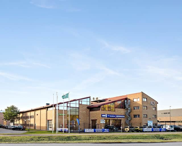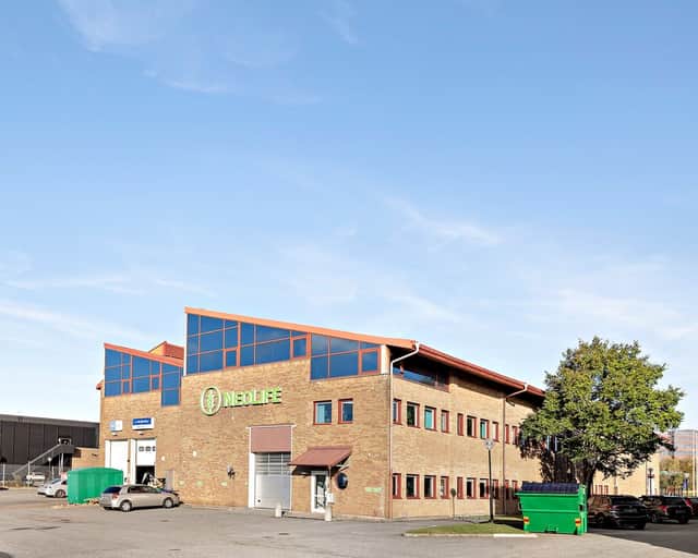 Fastigheten är bebyggd med kombinerad kontors- och lagerbyggnad.