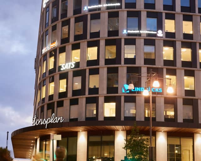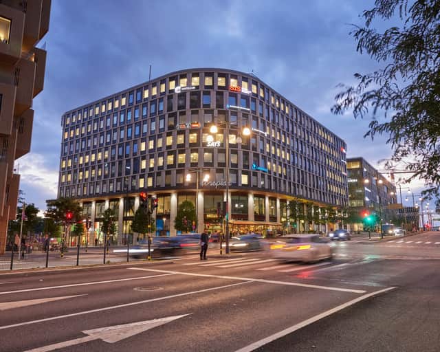 En toppmodern fastighet certifierad enligt BREEAM Outstanding, den högsta miljöcertifieringen i världen. Fastighetens 23 000 kvm omfattar 18 800 kvm kontor. I entréplan hittar du service såsom butiker, restaurang och café samt en träningsanläggning.Träna gärna med magisk utikt över Stockholm, på en velodromlikande löparbana eller i utegymet, båda på taket.