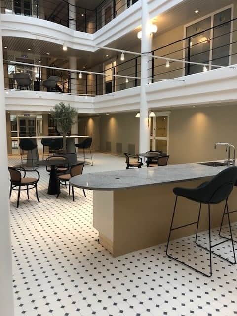 I hjärtat av byggnaden finns en ny, ljus och inbjudande ljusgård som erbjuder en naturlig mötesplats för både spontana samtal och bokade möten. Den passar lika bra för en avkopplande fika som för inspirerande arbetsstunder i en trivsam miljö.