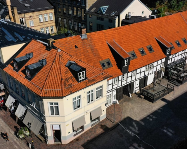 I historiska kvarter mitt i staden ligger fastigheten i hörnan Södra Storgatan och Billeplatsen intill Landborgen och Hallbergs trappor. Fastigheten består av tre huskroppar varav ett korsvirkeshus ut mot Billeplatsen, en del ut mot Södra Storgatan byggd 1929 och en senare del belägen på innergården med ingång från Billeplatsen.
