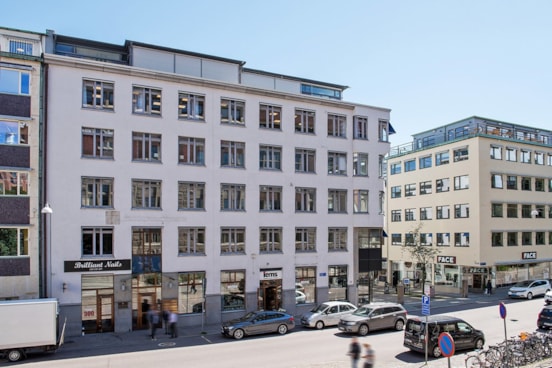 Inbjudande hörnfastighet fördelad på 6 våningsplan. I fastigheten finns en variation av kontor, butiker samt parkeringsplatser i källarplan. strategisk plats med närhet till affärsdistrikt, banker, restauranger och andra bekvämligheter. Det kan vara praktiskt för både medarbetare och kunder att nå platsen.