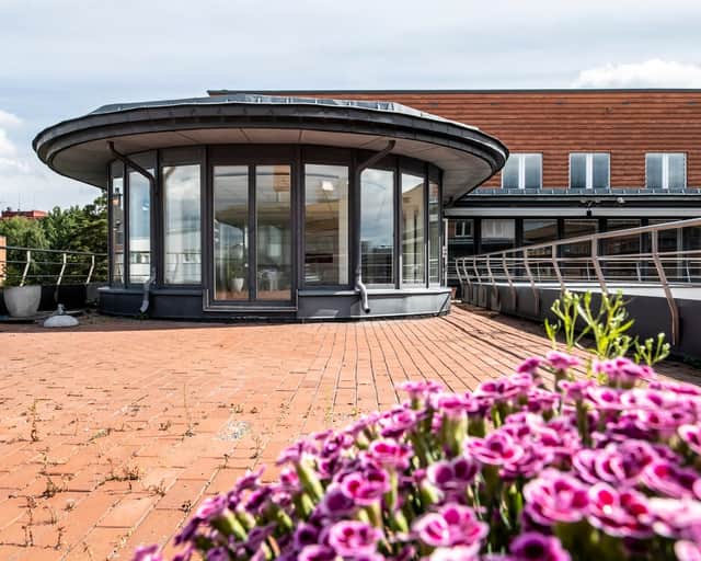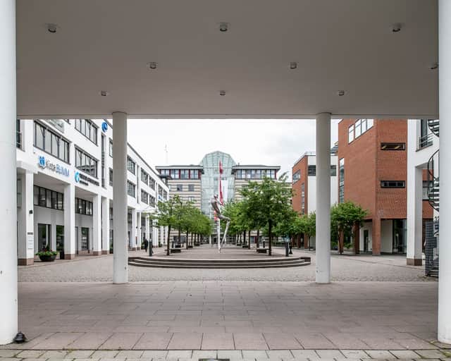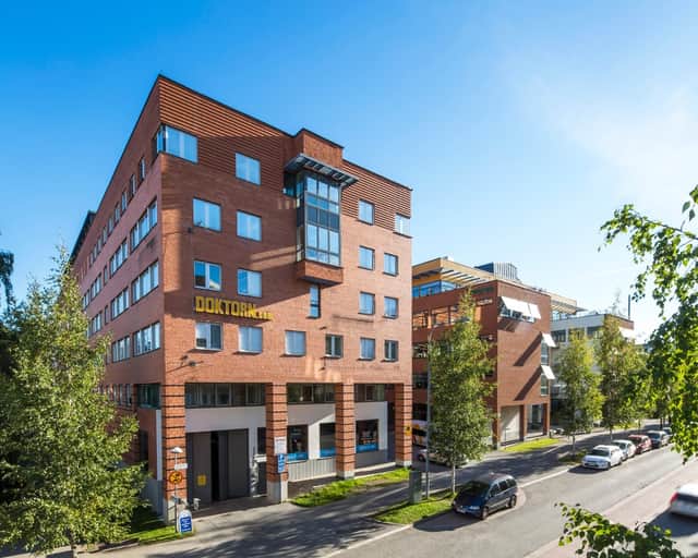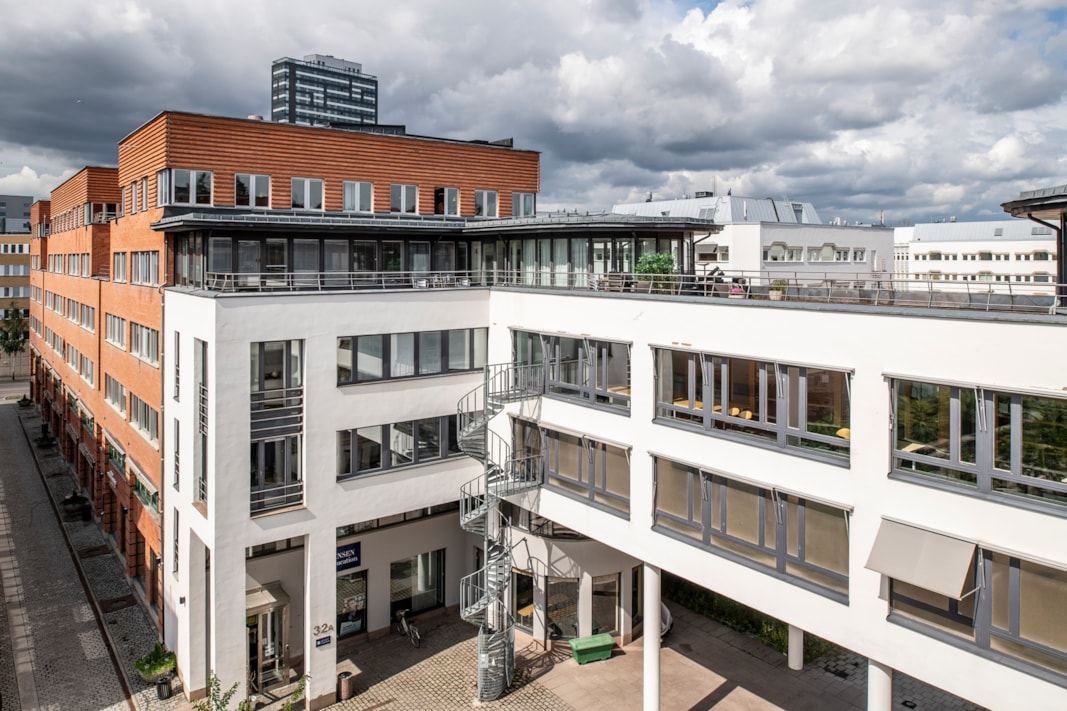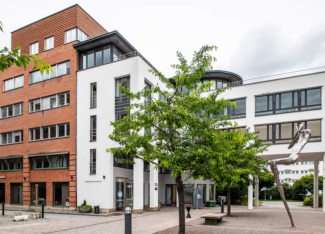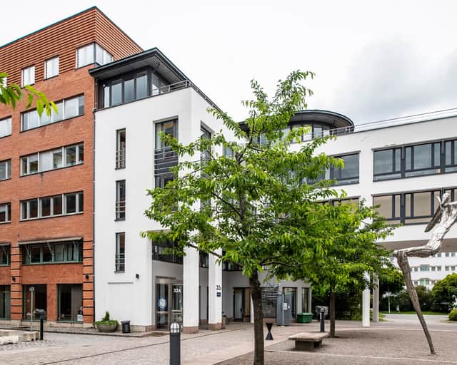 En fin och välskött kontorsfastighet med trevliga utemiljöer. Fastigheten är på ca 25 000 kvm. Parkering erbjuds i varmgarage eller utomhus.
