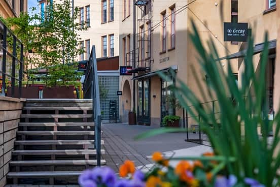 Kvarteret Knäppingsborg har en unik miljö som är beläget mitt i centrala Norrköping och sjuder av liv och rörelse dygnet runt.