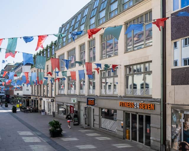Kvarteret innehåller en blandning av nya och äldre byggnader.