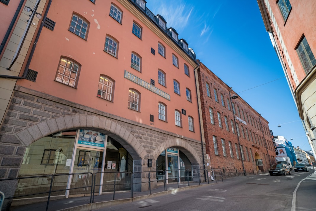 I närheten finns det gott om restauranger och på andra sidan strömmen hittar du kvarteret Knäppingsborg med sin småskaliga handel, fina restauranger och mysiga miljö.
