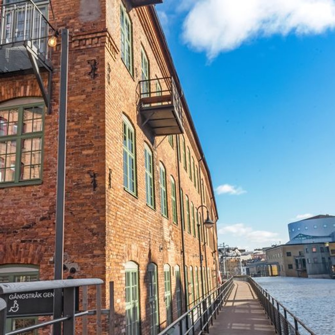 I hjärtat av industrilandskapet finner du denna unika kontorsfastighet. Här blir du granne med vattenfallet, universitetet, konsert- och kongresslokaler. En härlig miljö som andas historia men som erbjuder moderna & funktionella kontorslokaler. Industrilandskapet runt Motala ström är unikt i Europa. Området domineras av Strömmens forsande vatten och av ståtliga fabriksbyggnader. De flesta fabrikerna kom till mellan 1850 och 1920 men Strömmens forsar och fall har utnyttjats sedan medeltiden.