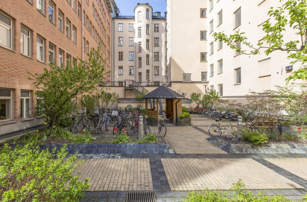 Majoriteten av fastigheten i kvarteret uppfördes i slutet av 1980-talet, men här finns även delar med byggår från förra sekelskiftet. Bakom de inbjudande fasaderna döljer sig lummiga innergårdar som förbinder Torsgatan med Dalagatan – en oas för avkoppling från stadens puls.