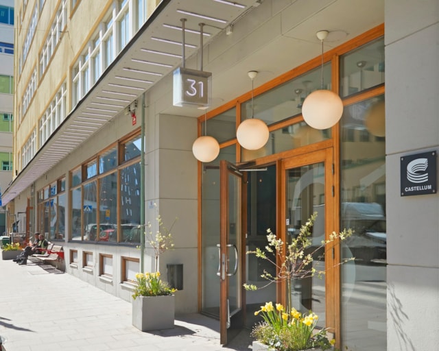 Fastigheten erbjuder ett brett serviceutbud, inklusive restaurang, garage med biluthyrning, biltvätt, gym och frisör. För cyklister finns bekvämligheter i form av gemensamma cykelrum och omklädningsrum, vilket gör pendlingen smidigare och enklare.