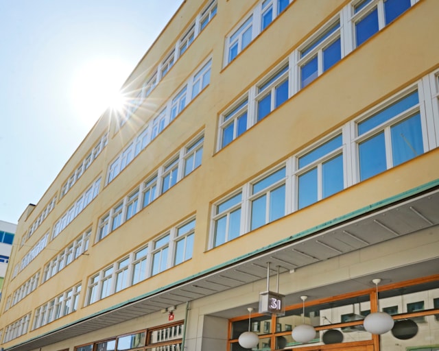 Kontorsbyggnaden uppfördes 1948 som garage- och industrilokal för Bilägarnas Inköpscentral, föregångaren till OK. Byggnadens ursprungliga kvaliteter lever kvar än idag och präglar de ljusa och flexibla kontorslokalerna.