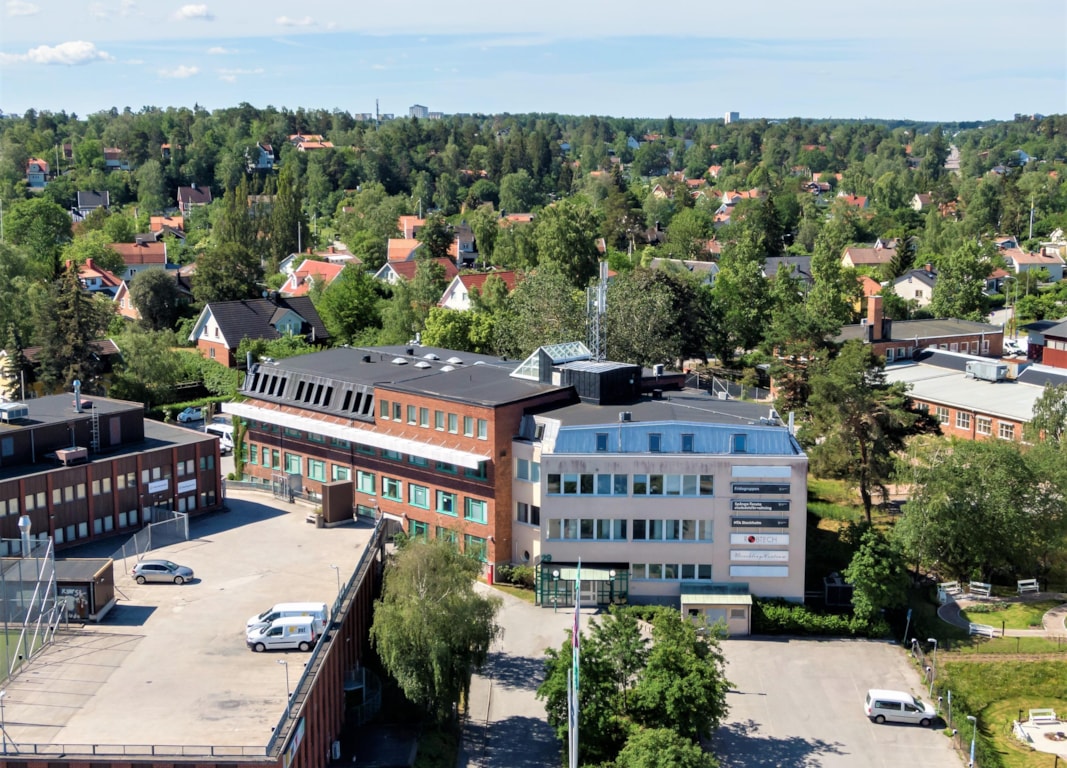 Denna kontorsbyggnad uppfördes redan 1950, men genomgick en omfattande ombyggnad 1990.