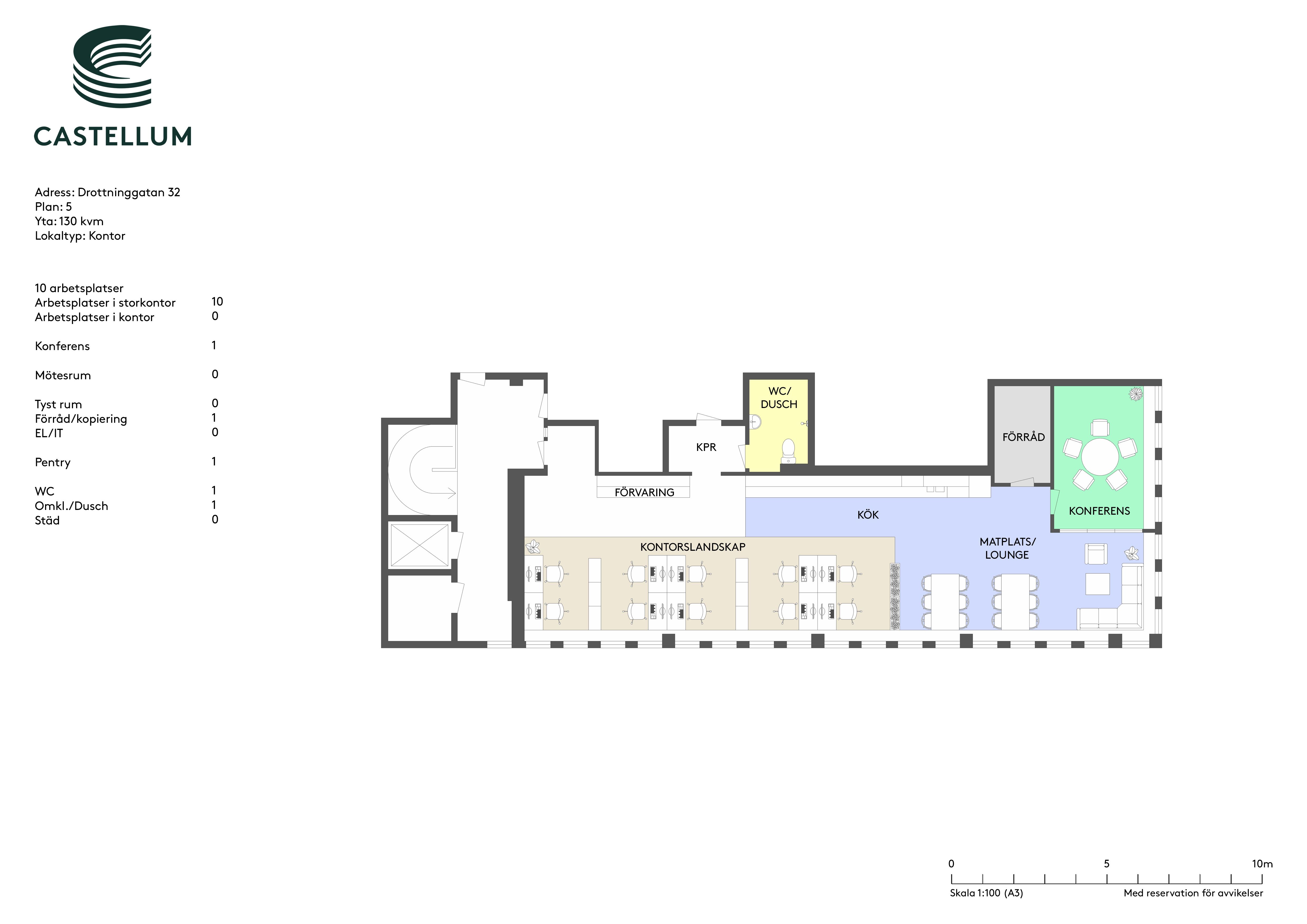 Garage med 67 parkeringsplatser, med en hiss som tar dig direkt upp till arbetsplatsen.