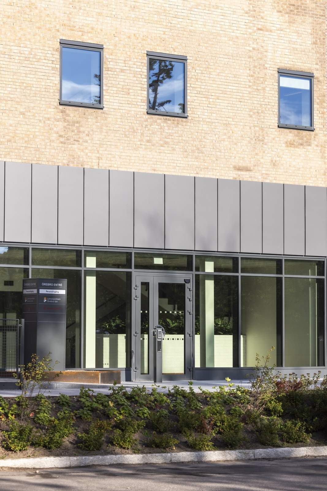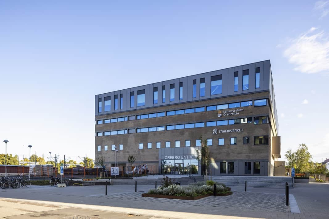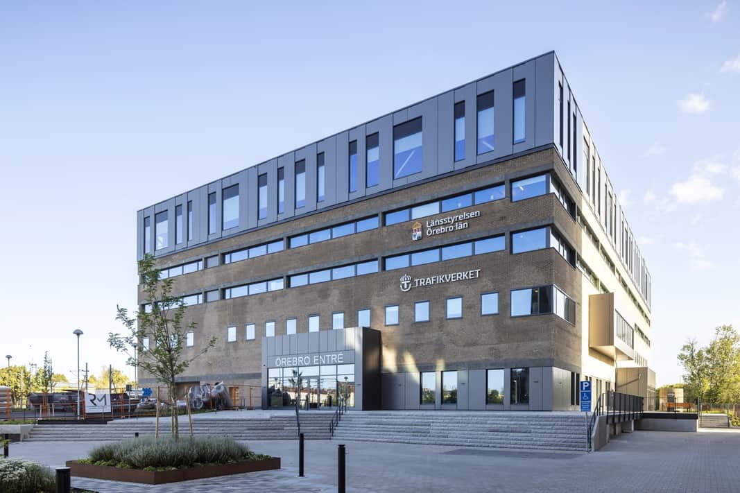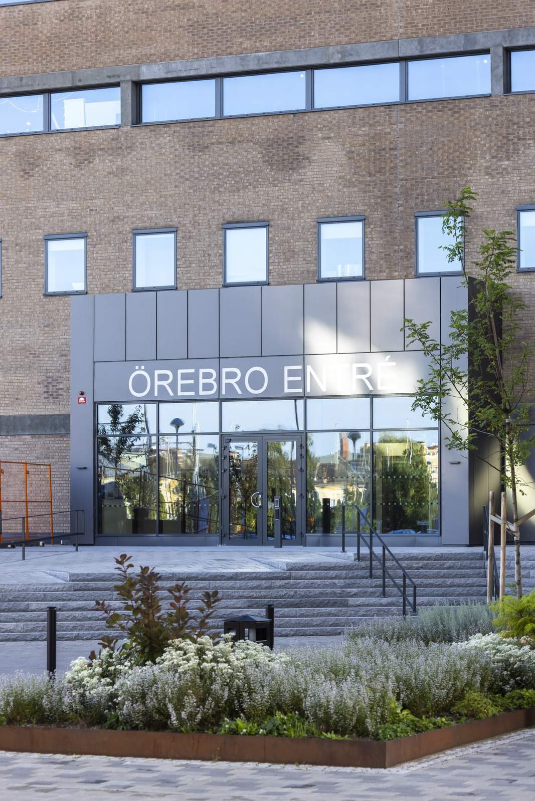 Örebro Entré är fördelat i två fastigheter. Här erbjuds moderna kontor och inbjudande utemiljöer med en gemensam takterrass. I fastigheten finns gymmet Member 24.