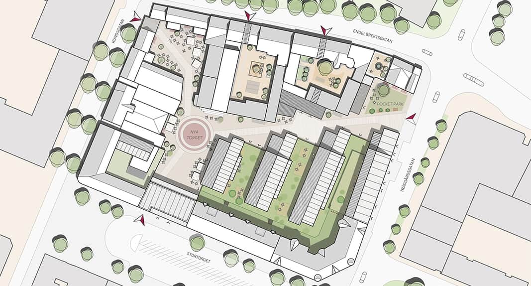 Trivsamt område med innergårdar och trevliga gatustråk med butiker och restauranger. I området hittar du Stallbacken, det levande torget med restauranger, café och butiker. Mysiga uteserveringar under sommartid.