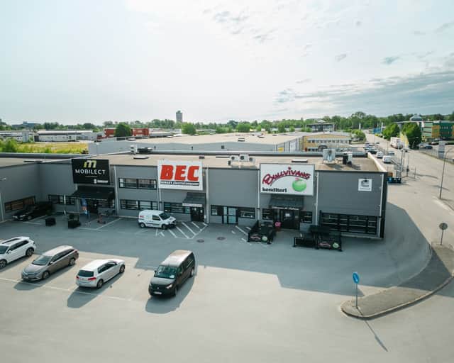I fastigheten finns butiks-, kontors- och lagerlokaler.