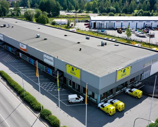 I fastigheten finns butiks-, kontors- och lagerlokaler.