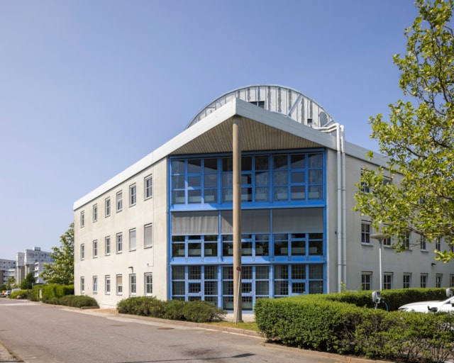 Fastigheten består av två huskroppar i två respektive tre plan, som är sammanlänkade via ett trapphus. Varje huskropp har sin egen entré via ett generöst tilltaget glasparti, som sträcker sig från mark upp till takfot.