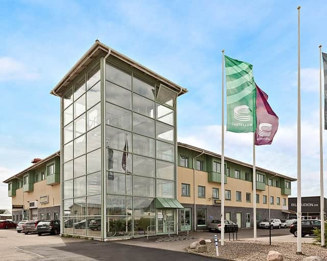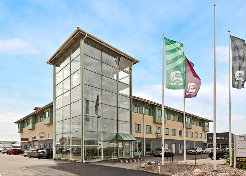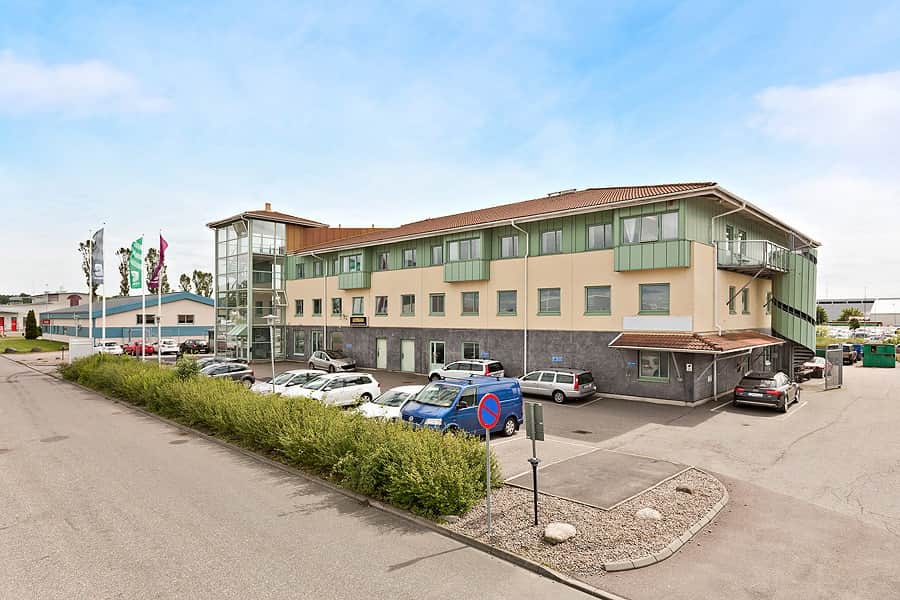 Fastigheten består av en huskropp med lager och kontor i tre våningar med ett glasat torn vid nordöstra hörnet. Fastigheten har utmärkta angöringsmöjligheter för både personbils- och lastbilstransporter.