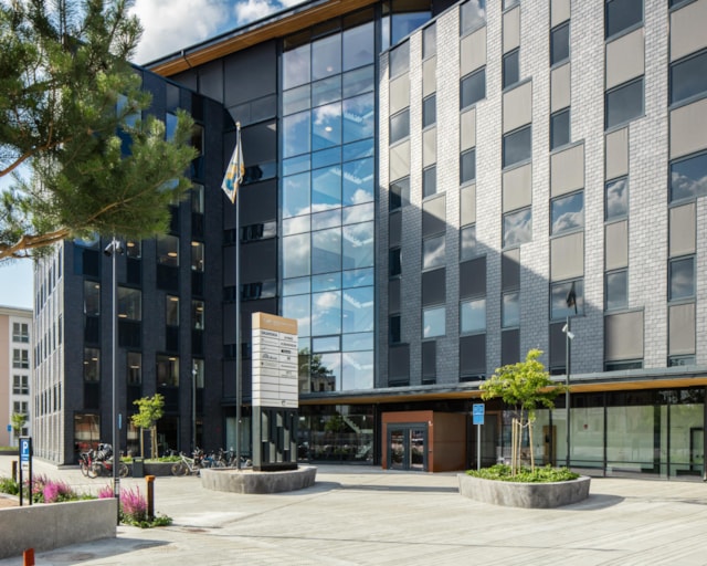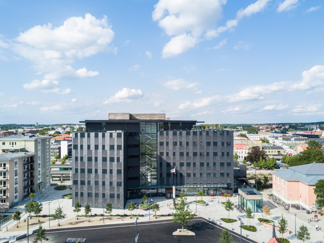 Central kontorsbyggnad fördelat över 9 våningar med garage i de två nedre planen, reception och konferensdel i entréplan samt kontor och co-working på övriga plan. Stor gemensam takterrass med fantastisk utsikt över vår vackra stad. Byggnaden uppfördes 2016.