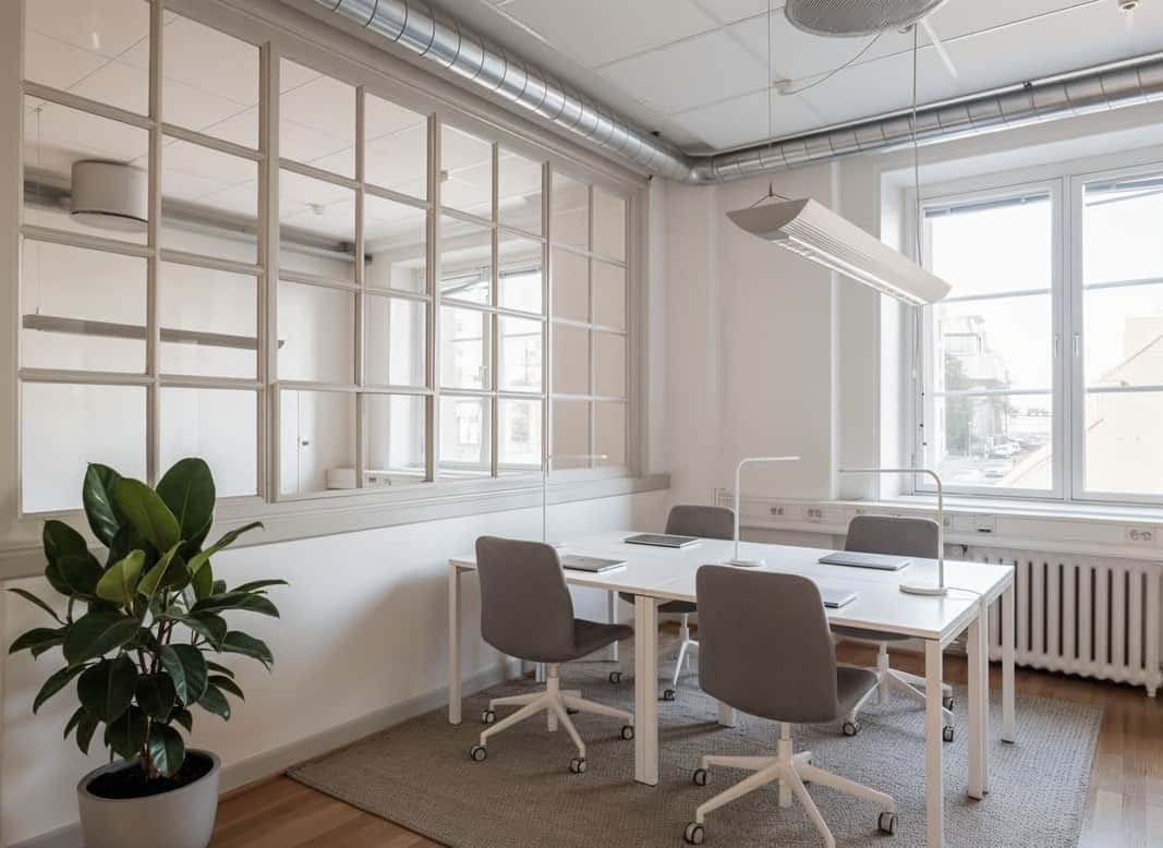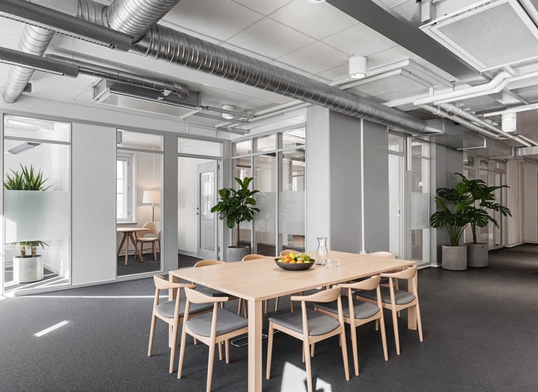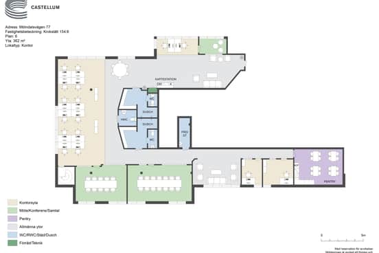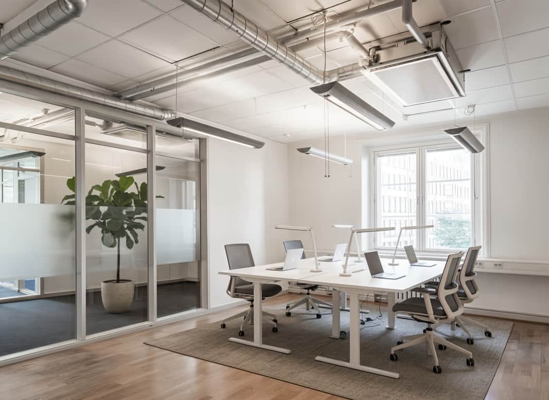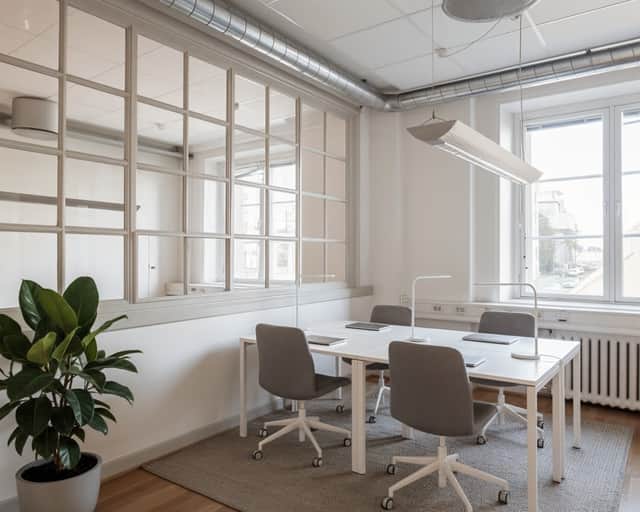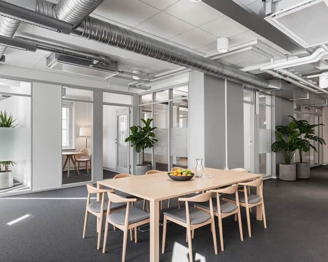 Planlösningen består i dag av både enskilda rum och större grupprum, konferensrum för 16 st personer - allt för att möta ert företags behov och hjälpa till att öka produktiviteten. Lokalen kan anpassas för att matcha er önskemål. Vid anpassningar försöker vi alltid ha återbruk och hållbarhet i åtanke.