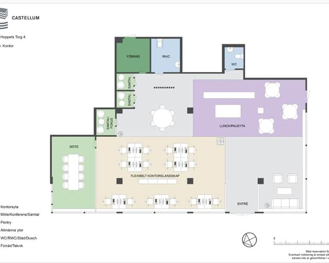 Planlösningen är flexibel och det finns möjlighet att dela av lokalen och skapa ett showroom i en del om man så önskar.