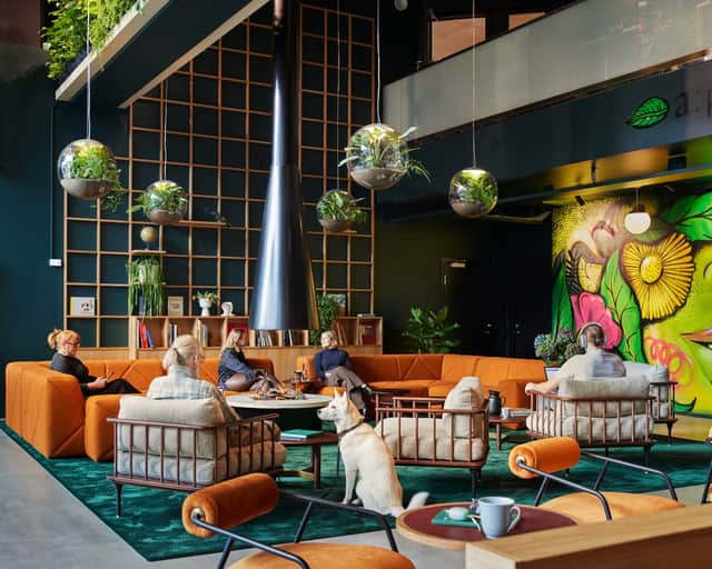 Vi har laddat bottenvåningen med all tänkbar service, lounge med eldstad, pop-art konst, pokerbord, härlig grönska, café, konferens, gym med PT samt hunddagis.