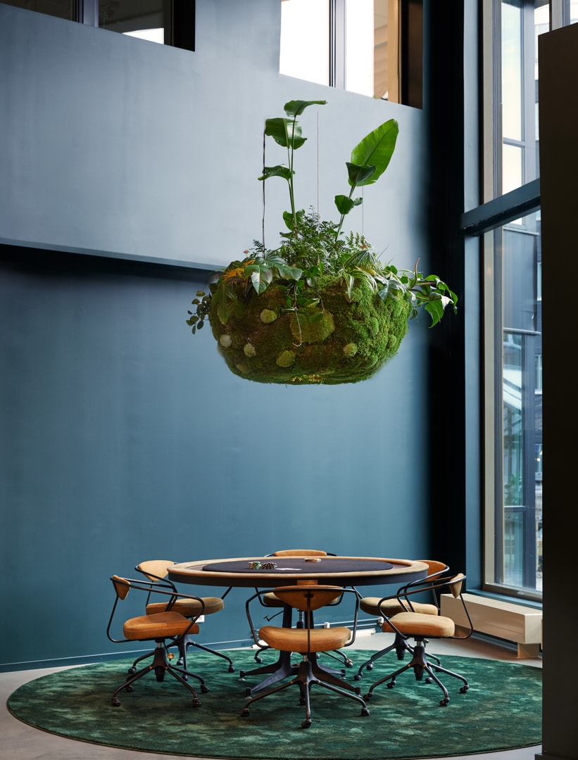Vi har laddat bottenvåningen med all tänkbar service, lounge med eldstad, pop-art konst, pokerbord, härlig grönska, café, konferens, gym med PT samt hunddagis.