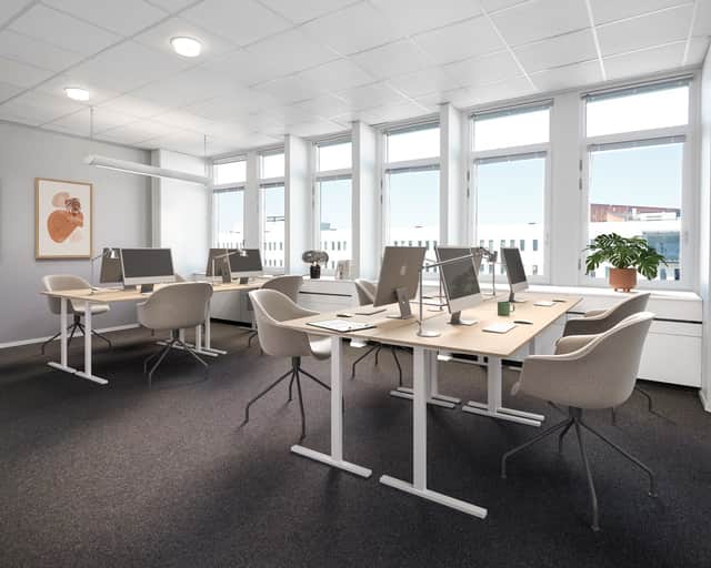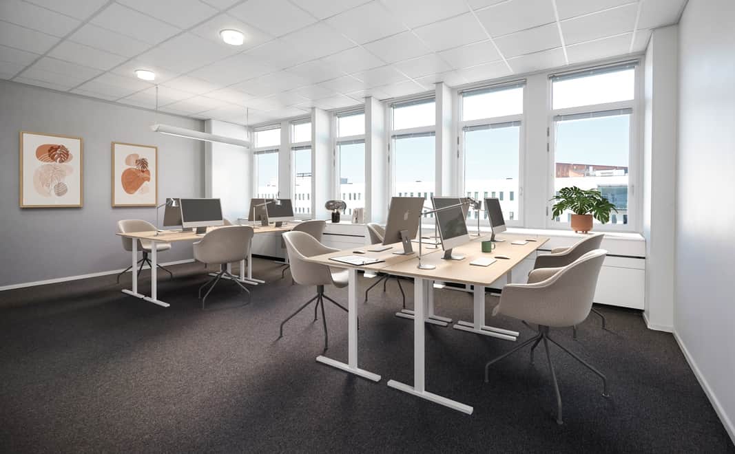 Kontoret har också tillgång till ett internt gym i fastigheten, vilket kan vara mycket praktiskt för medarbetare som gärna vill träna under dagen.