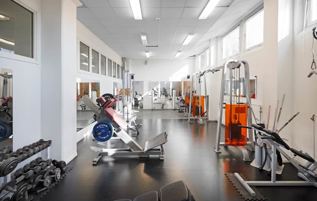 Bekvämligheter: Restaurang, gym med stor träningssal för exempelvis innebandy och cirkelträning, samt omklädningsrum med bastu och duschar.