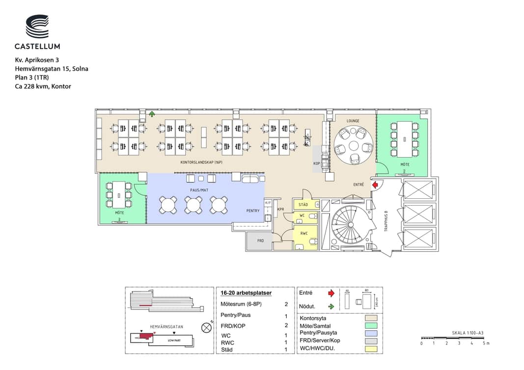 Här erbjuds som hyresgäst ett ljus och välplanerat kontor med flexibla ytor som kan anpassas efter verksamhetens behov. Kontoret disponeras idag med öppet kontorslandskap, mötesrum samt pentry och gemensam yta.