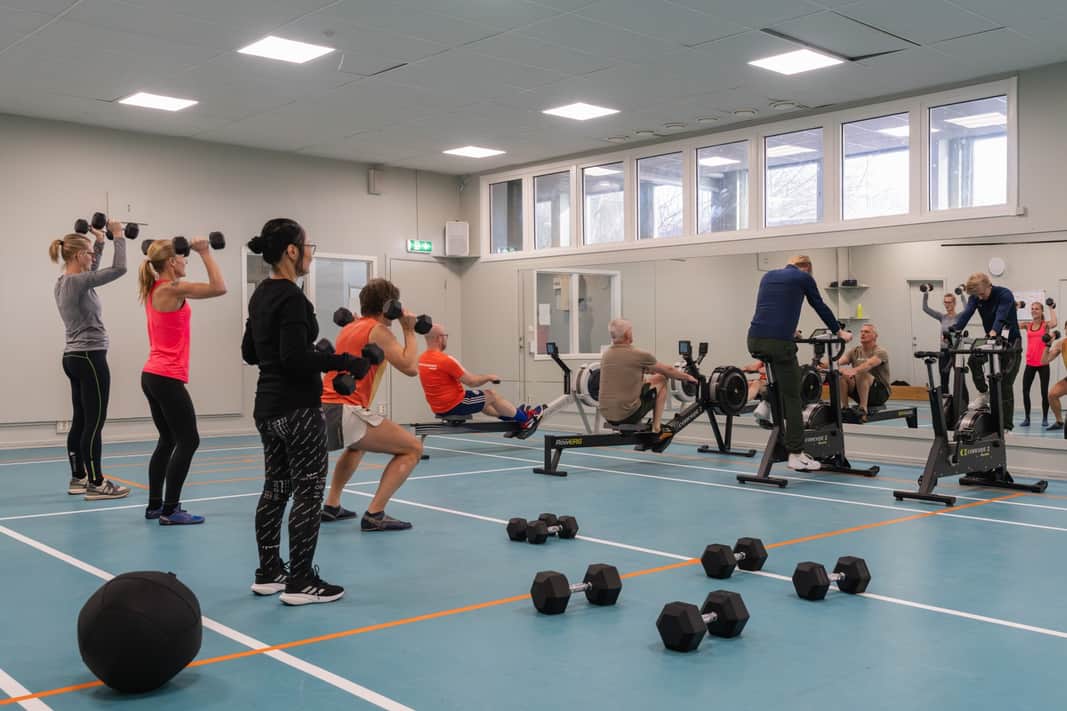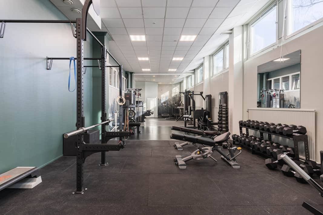 Bekvämligheter: Restaurang, gym med stor träningssal för exempelvis innebandy och cirkelträning, samt omklädningsrum med bastu och duschar.