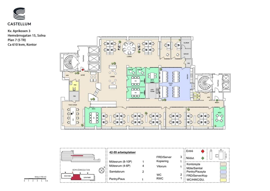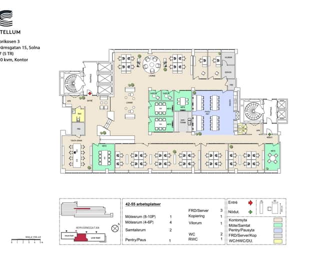 Oslagbart läge med fullservice i området: Konferensfaciliteter, restauranger, gym och andra träningsmöjligheter, co-working, hotell och eventlokaler.