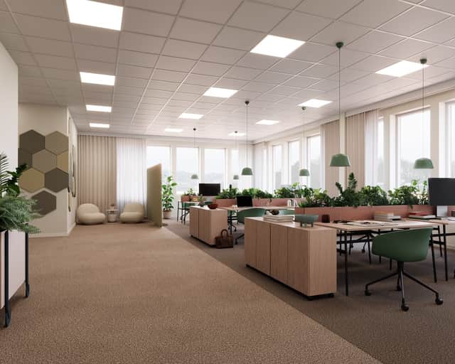 Här finns generösa fönsterpartier längs hela kontorsytan för att skapa en optimal, trevlig och ljus arbetsmiljö.