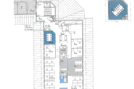 Idagsläget en blandad planlösning med kontorsrum och öpnna ytor.