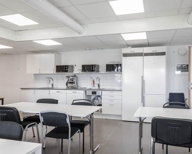 Upptäck en flexibel kontorslokal i markplan med ljusa ytor och praktisk planlösning. Lokalen erbjuder både omklädningsrum och personalutrymmen, vilket gör den väl anpassad för verksamheter med aktiva arbetsdagar.