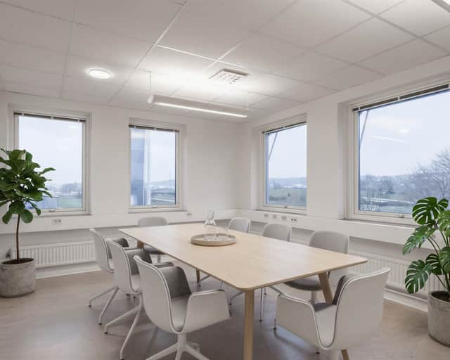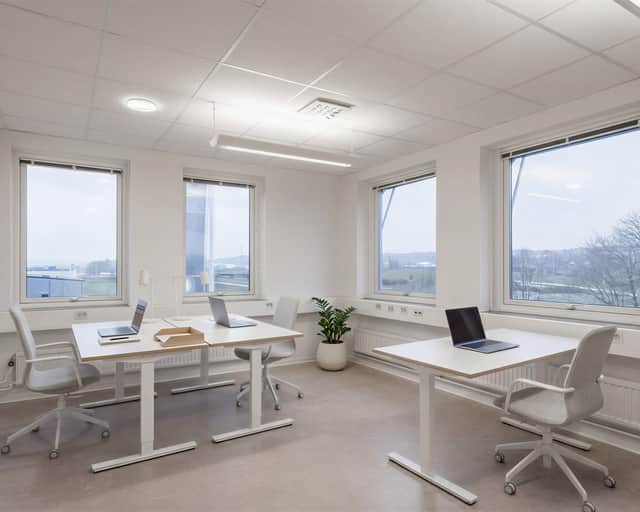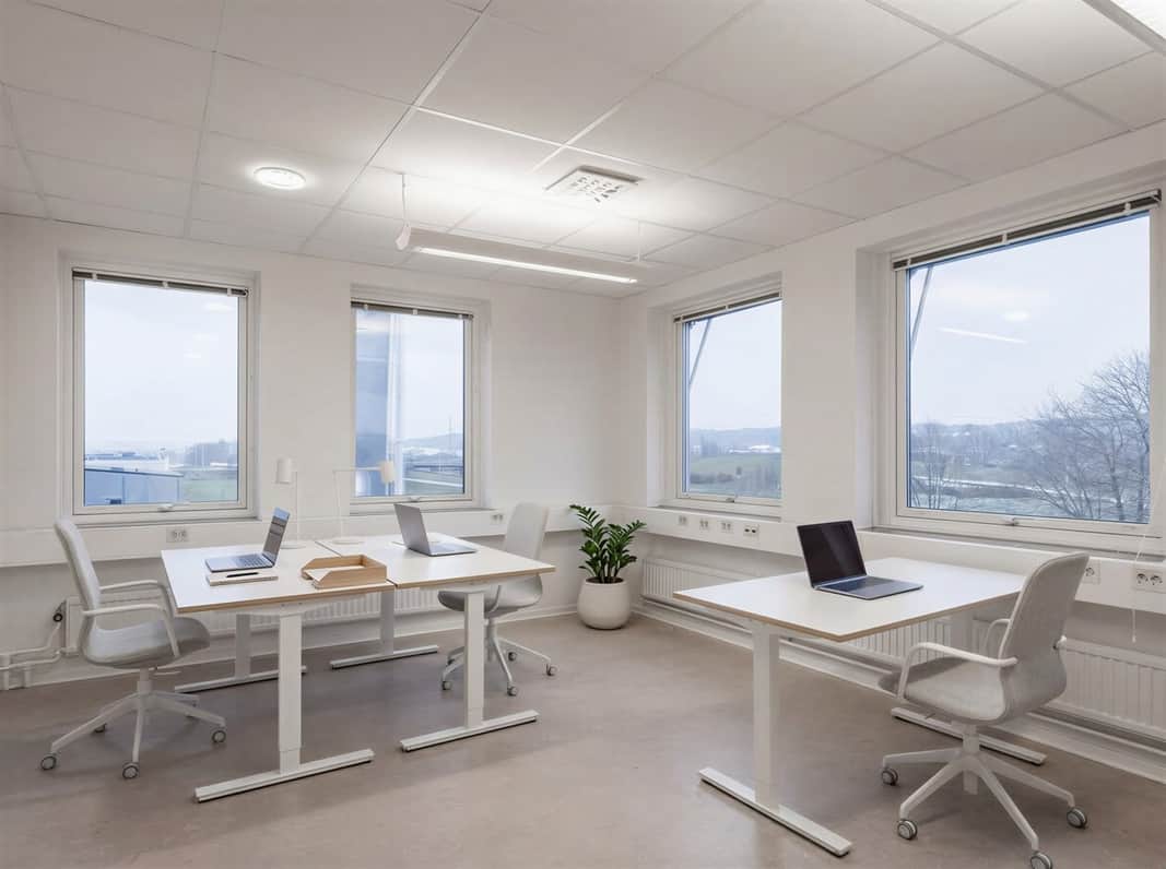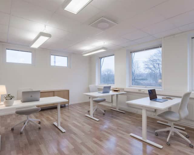 Samtliga våningsplan har stora, ljusa rum samt tillgång till wc och pentry, vilket skapar en funktionell arbetsmiljö.