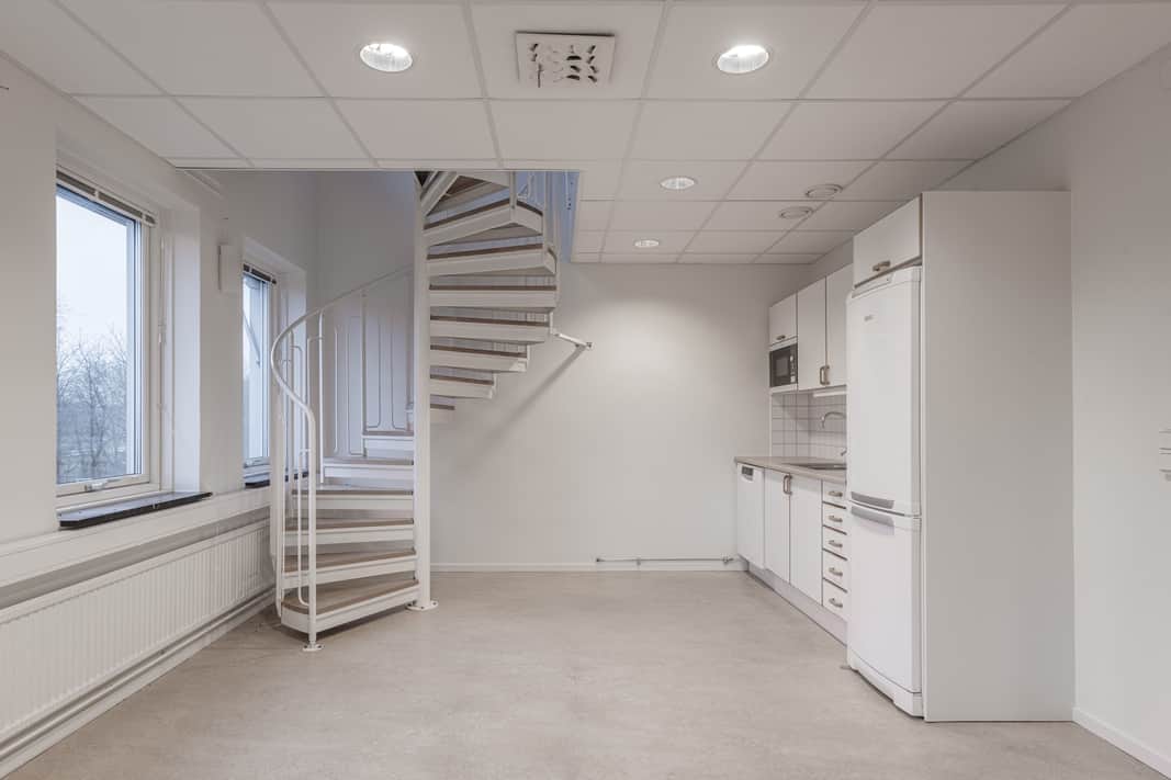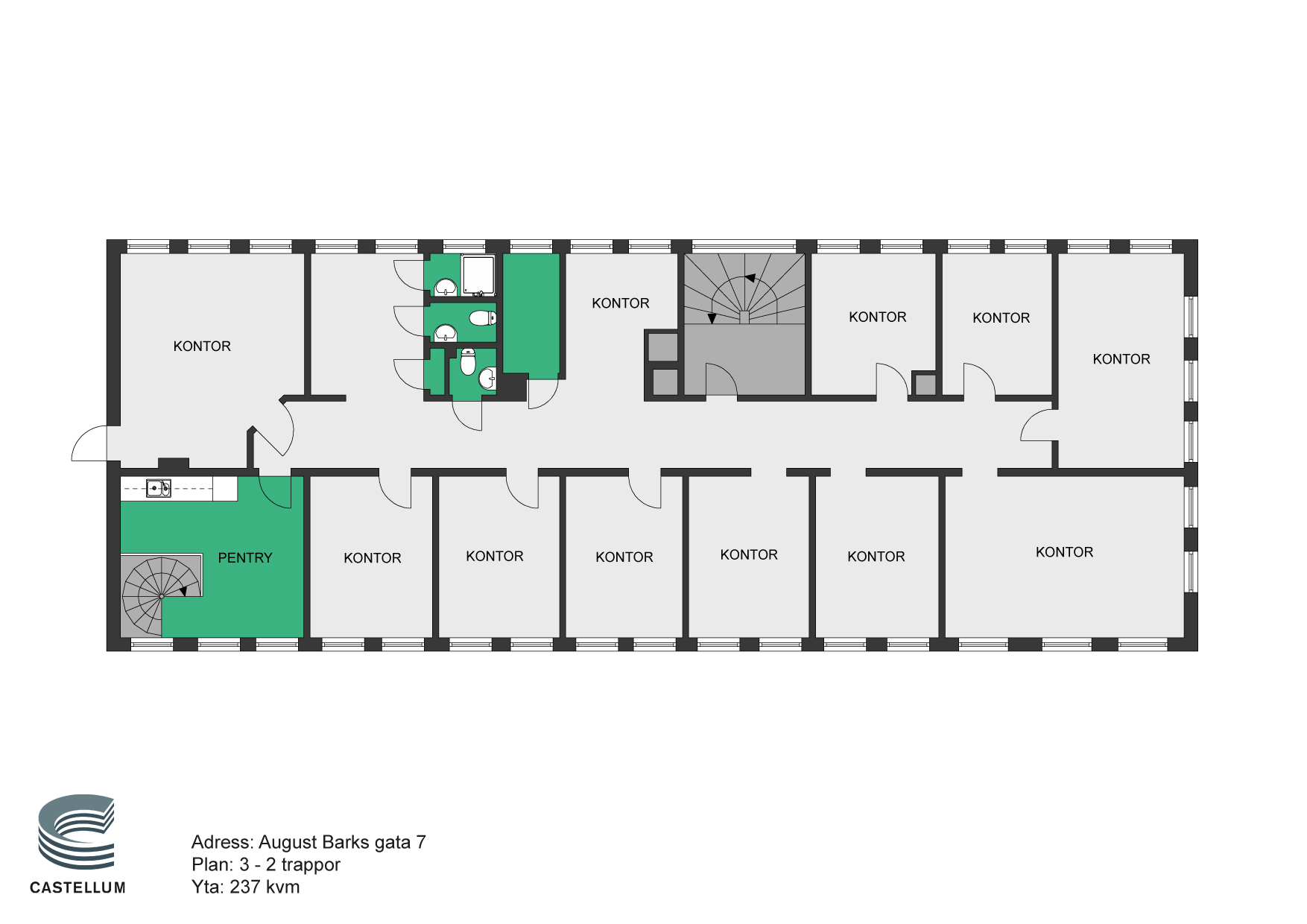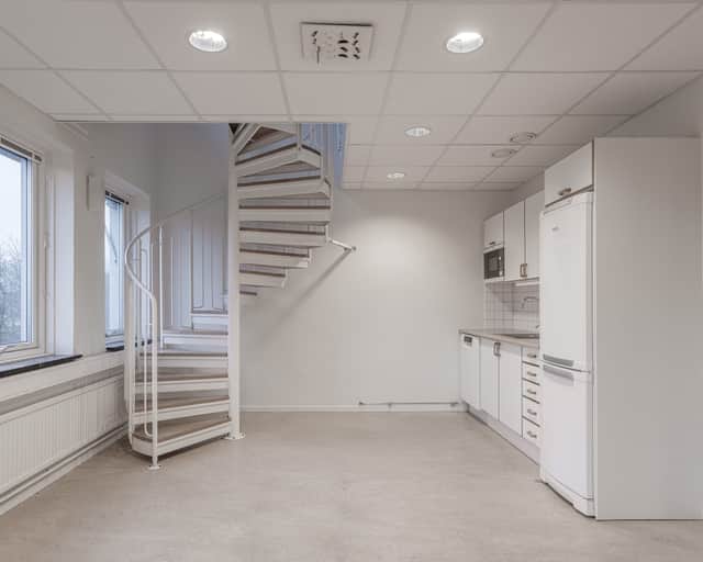 Samtliga våningsplan har stora, ljusa rum samt tillgång till wc och pentry, vilket skapar en funktionell arbetsmiljö.