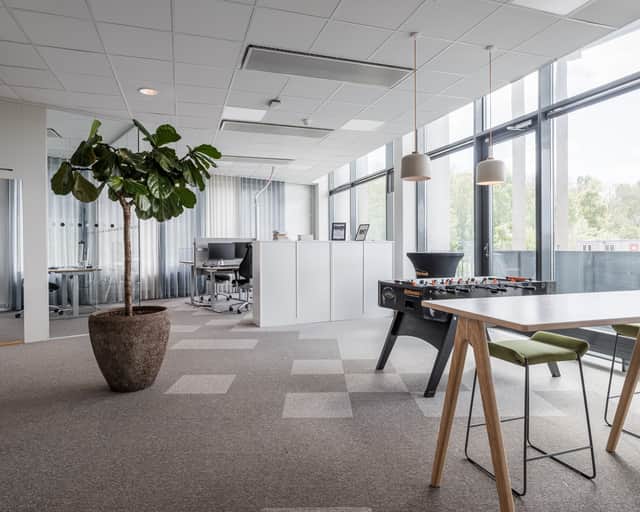 I planlösningen finns både öppna kontorslandskap samt 12 st enskilda kontorsrum för att ge flexibilitet.