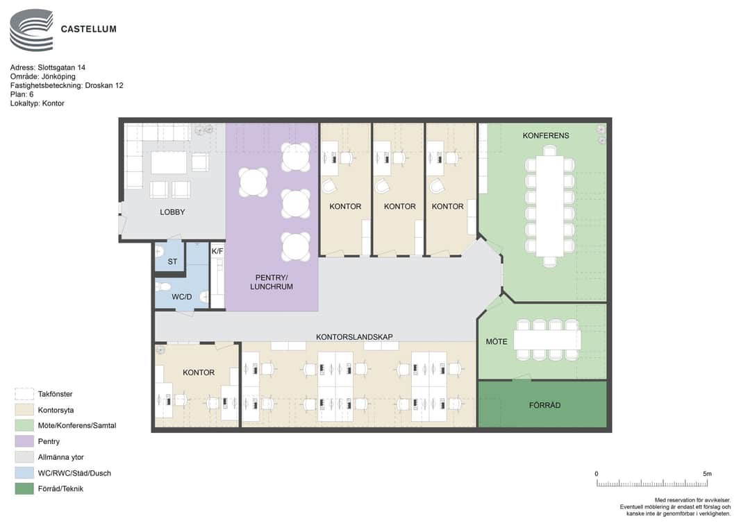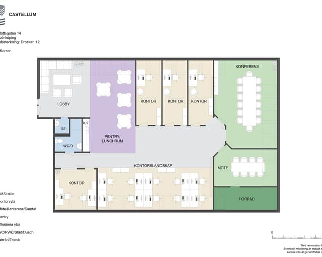 Castellum erbjuder kontorslokaler som kan skräddarsys efter just ditt företags behov. Bifogad planskiss och visionsbild visar en möjlig lösning där vissa väggar tas ner för att skapa ljusa, öppna arbetsytor. Vill du ha en kombination av öppet kontorslandskap och enskilda rum? Eller fler mötesrum för samarbete? Vi anpassar lokalen utifrån din verksamhet.