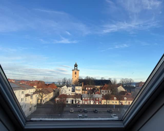 Lokalbussarna stannar alldeles utanför huset, goda parkeringsmöjligheter på Östra Torget.